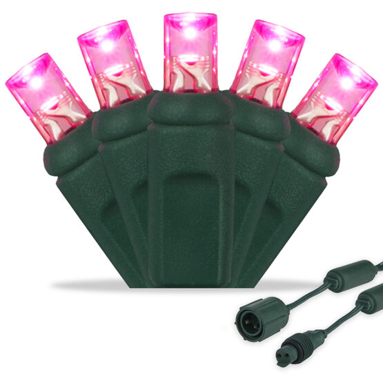 5MM-100-4-PW-G-UL | UL 120V 22# Green Wire 100L 5MM Wide Angle 4X4X4" light set ,Lead in 4", Bulbs Spacing 4", Lead out 4" , UL plug with rectifier ,Pure white |