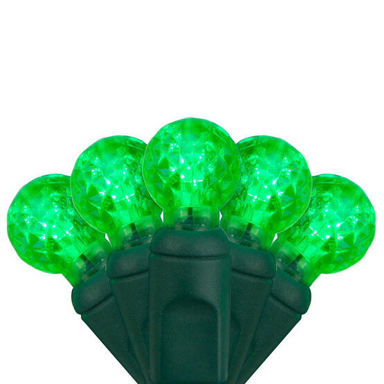 G12-50-4-GR-G-UL | UL 120V 22# Green Wire 50L G12 Faceted 4X4X4" light set ,Lead in 4", Bulbs Spacing 4", Lead out 4" , UL plug with rectifier ,Green |