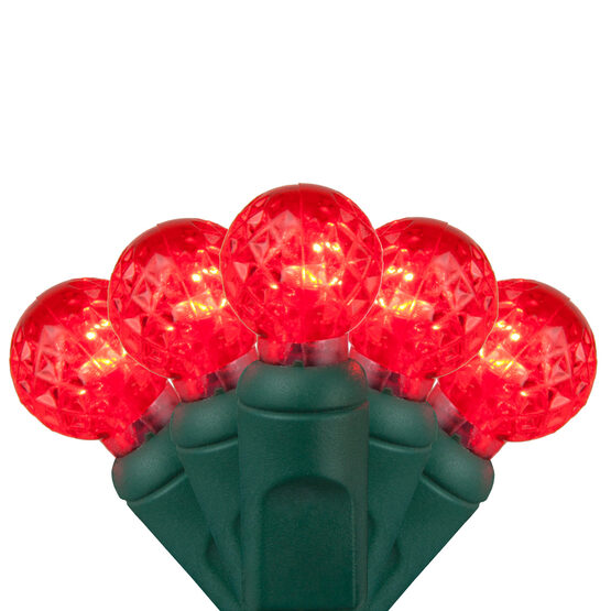 G12-50-4-RE-G-UL | UL 120V 22# Green Wire 50L G12 Faceted 4X4X4" light set ,Lead in 4", Bulbs Spacing 4", Lead out 4" , UL plug with rectifier ,Red |