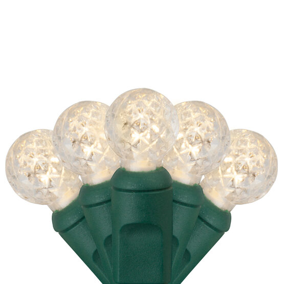 G12-50-4-PW-G-UL | UL 120V 22# Green Wire 50L G12 Faceted 4X4X4" light set ,Lead in 4", Bulbs Spacing 4", Lead out 4" , UL plug with rectifier ,Pure white |