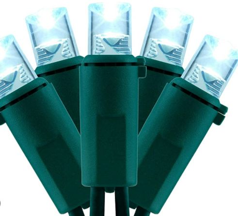 5MM-100-4-PW-G-UL-2PC | UL 120V 22# Green Wire 100L 5MM Wide Angle 4X4X4" light set ,Lead in 4", Bulbs Spacing 4", Lead out 4" , UL plug ,Pure white |