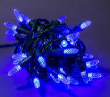 M6-50-4-BL-G-UL-2PC | UL 120V 22# Green Wire 50L M6 Faceted 4X4X4" light set ,Lead in 4", Bulbs Spacing 4", Lead out 4" , UL plug ,Blue |