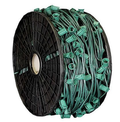 Spool, 1000' , 18AWG SPT-2 GREEN WIRE, 12" SPACING ,1000L C7 GREEN SOCKETS |