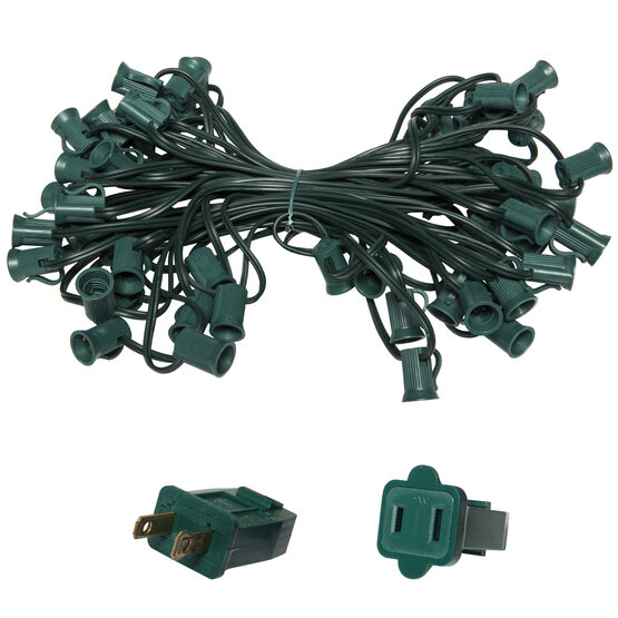 Stringer , 50', 18AWG SPT-1 GREEN WIRE, 12" SPACING ,50L C7 GREEN SOCKETS |
