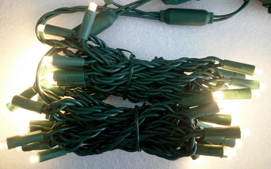 IM-5MM-50-4-WW-G-CSA CSA 120V 22# Green Wire  50L 5MM Wide Angle  4X4X4"  light set ,Lead in 4",Bulbs Spacing 4", Lead out 4" ,  CSA plug with rectifier,Warm white, I-mold constuction