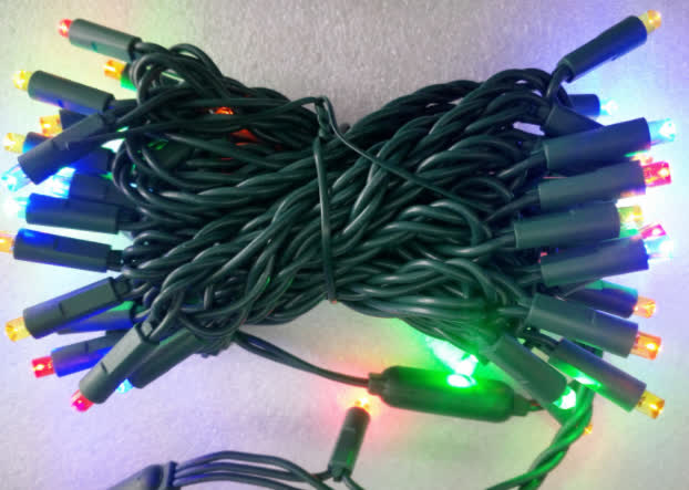 IM-5MM-50-4-MU-G-UL UL 120V 22# Green Wire  50L 5MM Wide Angle  4X4X4"  light set ,Lead in 4", Bulbs Spacing 4", Lead out 4" ,  UL plug with rectifier ,Multi (R/Y/B/G/O), I-mold constuction