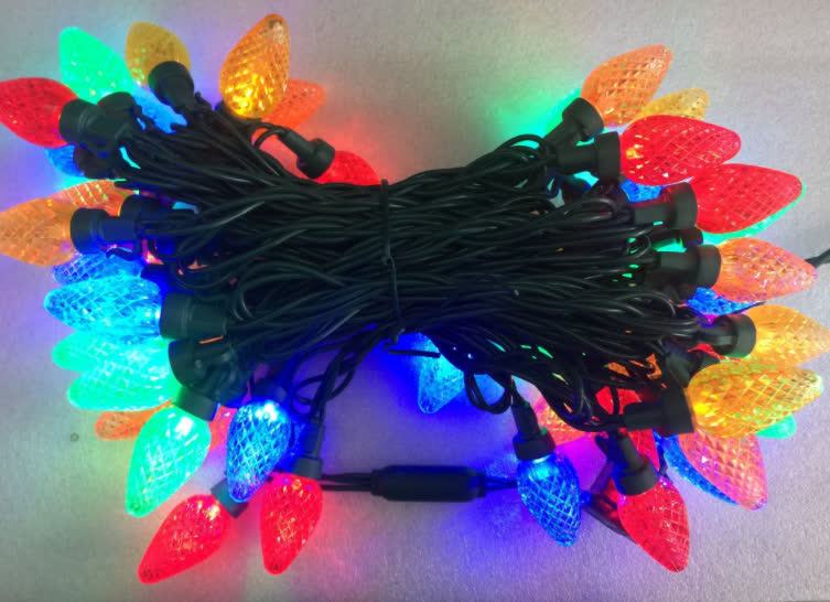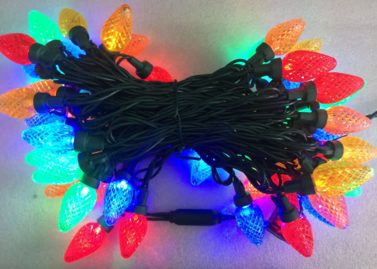 IM-C7-50-8-MU-G-CSA CSA 120V 22# Green Wire  50L C7 Faceted   4X8X4"  light set ,Lead in 4",Bulbs Spacing 8", Lead out 4" ,  CSA plug with rectifier ,MCSAti (R/Y/B/G/O), I-mold constuction