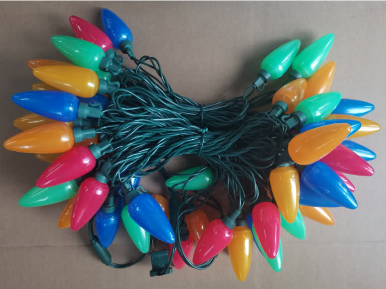 IM-C9S-50-8-MU-G-UL | UL 120V 22# Green Wire 50L C9 Smooth 4X8X4" light set ,Lead in 4", Bulbs Spacing 8", Lead out 4" , UL plug with rectifier ,Multi (R/Y/B/G/O), I-mold constuction |